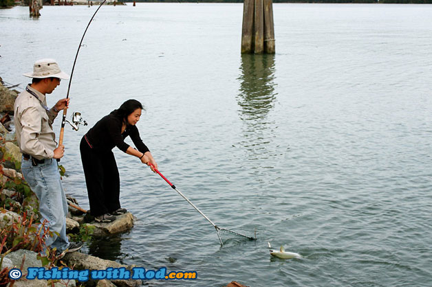 To target trout and char, use a light spincasting outfit and entice them with small spoons, spinners, jigs or crankbaits. These predatory species would grab any moving lure whenever opportunities are presented in front of them. The large pylons and other rocky structures are great places where these fish may hide. This is a catch and release fishery (with the exception of hatchery trout retention) so carry a net for proper fish handling if possible.